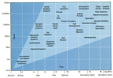 Esquema de la escala de tiempo a través de la cual actúan los diferentes procesos del sistema de la Tierra