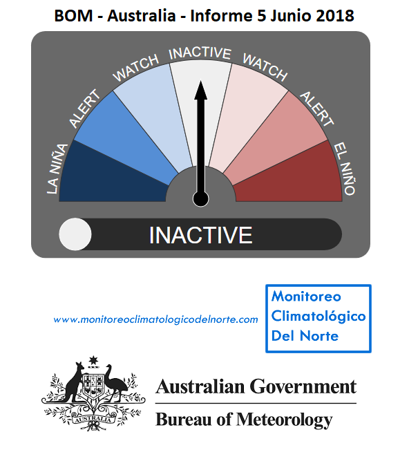Los indicadores atmosféricos y oceánicos de ENOS son en gran parte neutrales. Las temperaturas de la superficie del mar en el Océano Pacífico ecuatorial oriental son ahora más cálidas que el promedio, pero se mantienen dentro del rango neutral. En la sub-superficie del Pacífico tropical, las aguas se han calentado, y probablemente llevarán a un mayor calentamiento de la superficie del océano en el Pacífico oriental en las próximas semanas. En la atmósfera, el Índice de Oscilación del Sur y los vientos alisios son casi promedio.